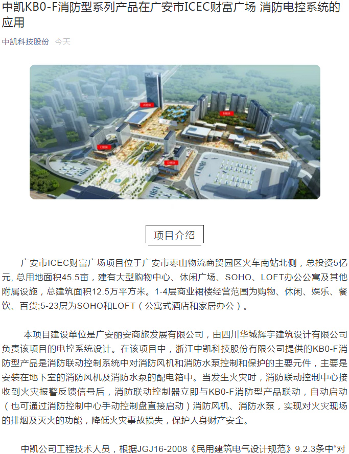 草莓秋葵菠萝蜜黄瓜榴莲视频KB0-F消防型係列產品在廣安市ICEC財富廣場 消防電(diàn)控係統的應用