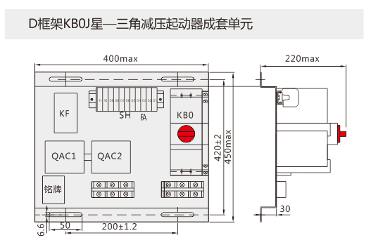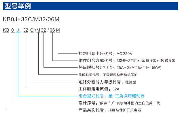 以KB0作為主開關,與接觸器、時間繼電器、電氣聯鎖(suǒ)等附件組合,構成Y-△減壓起動器成套單元(yuán)KB0J(以KB0-F消防型產品(pǐn)作為主開關,可構(gòu)成消防(fáng)型Y-△減壓起動器成套單元KB0J-F)可實現110kW及以下的電動機的Y-△減壓起動控製與保護。