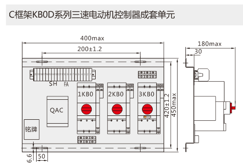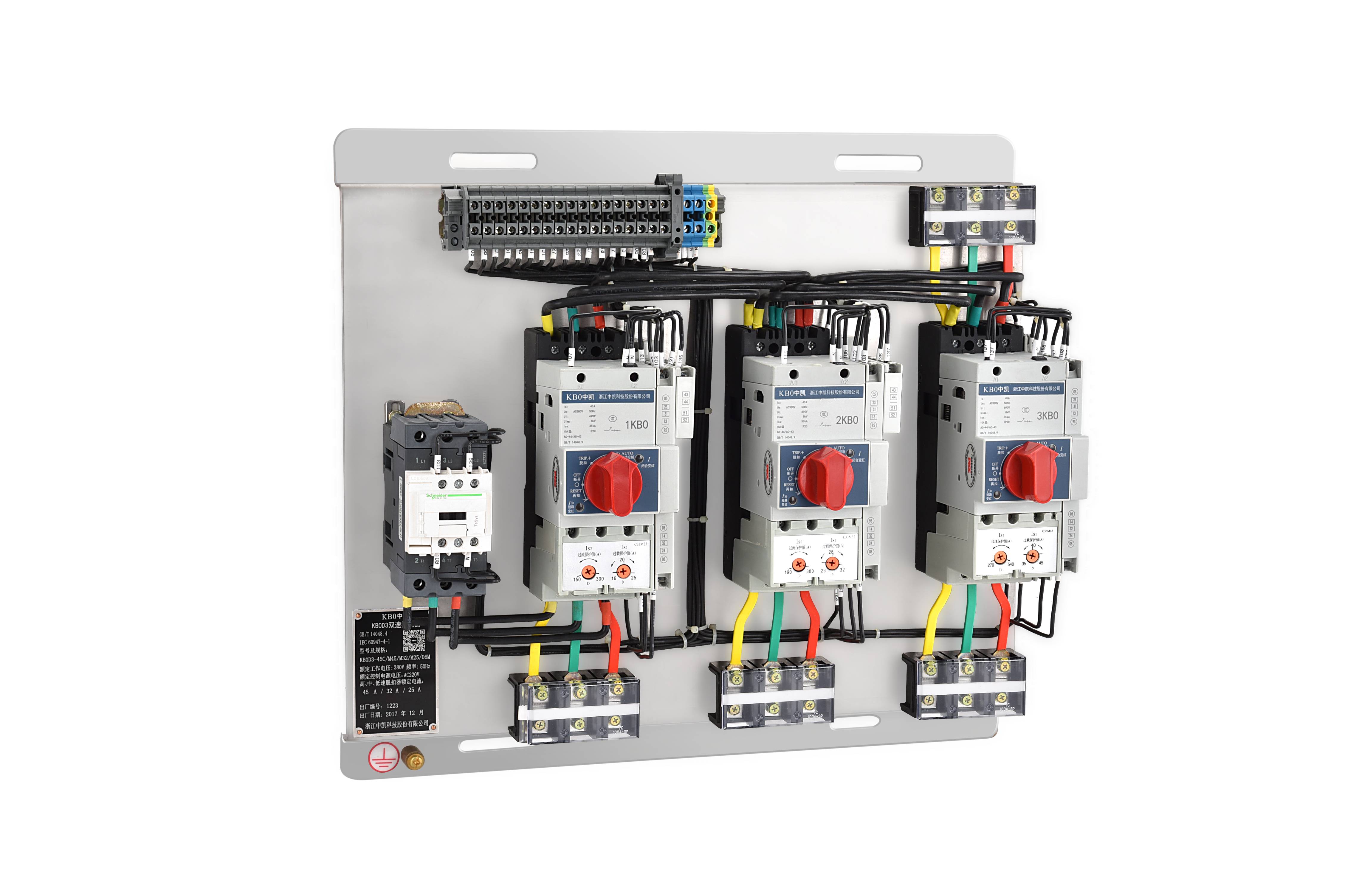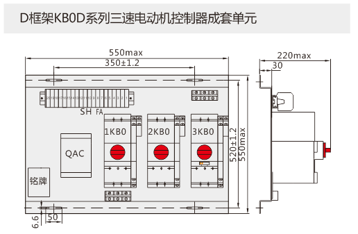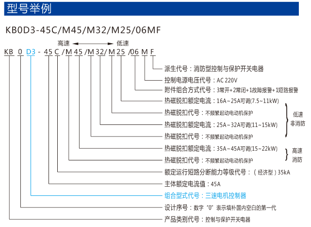 以KB0作為主開關,與接觸器、電氣聯鎖(suǒ)等附件組合,構成三速電動機控製KB0D3,適用於三速電動機的控製與保護。