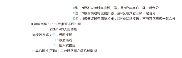 ZKM1係列塑料外殼式斷路器(qì) (以下簡稱斷路器),其額定絕緣(yuán)電壓為800V,適用於交流50Hz,額定工作電壓690V及以下(ZKM1-63為400V),額(é)定工作電流至800A的電路中作不頻繁轉換及電動機不頻(pín)繁起動(ZKM1-800 無電動(dòng)機保護型)之用。斷路器具有過載、短路和欠電壓保護功能,能保護線路和電源設備不受損壞。